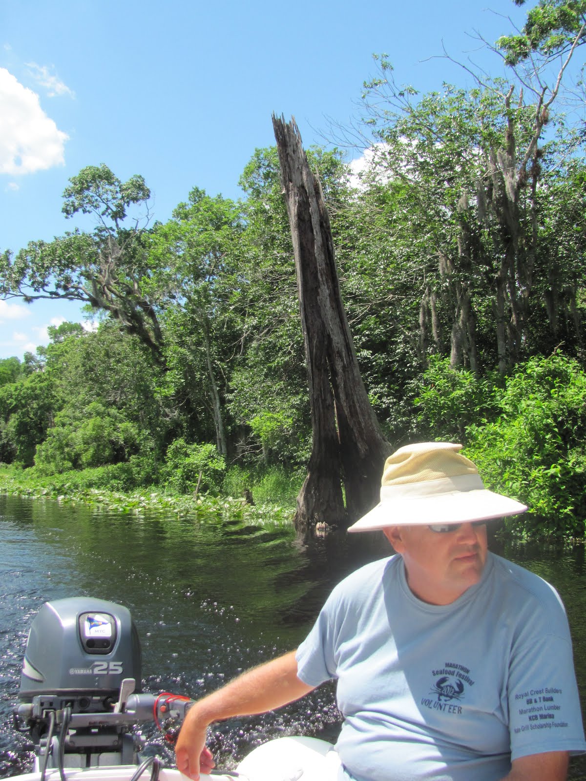 We landed the dinghy under the watchful eye of a local marine sheriff, who greeted us politely and verified that our dinghy complied with waterway regulations. Then we set off on the 1/3 mile boardwalk through a shady hardwood hammock.